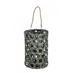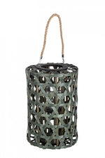 Green hexagonal lantern in wood 40h cm