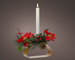 Add a festive touch to your home with this elegant table piece. The pinecones, Christmas stars, and berries create a warm and welcoming atmosphere. Perfect for decorating your table during the holidays.