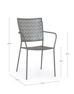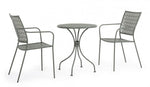 steel treated for outdoor use (e-coating) and powder coated (polyester) with a matte finish. stackable. packing without cardboard.