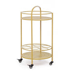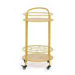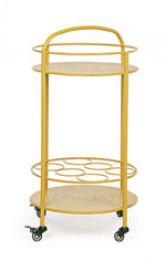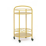 Yellow Ocher steel bottle trolley Material: steel treated for outdoor use, polyester powder coated with matte finish Yellow Ocher color 360 ° self-locking wheels 2 shelves Dimensions diam. cm 45 h 81 Suitable for indoor...