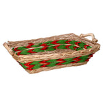Rectangular green red natural wicker basket cm53x38h13