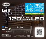 Ice Light WLED 120 LED 512xH60cm USE: Indoor / Outdoor use LUMINOUS EFFECT: Memory controller 7 plays of light + fixed light EXTENDABLE: Not Extendable NUMBER OF LAMPS: 120 Led type: Led - Ø5mm Reflex...