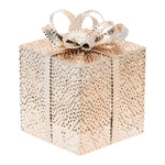 The VPM Champ Gift Pack. 3AA 13x13xH16.5cm is a perfect option to add a touch of magic to your Christmas decorations. This cubic gift package, made of shiny champagne colored perforated metal, is equipped with 20 warm white LEDs with a diameter of 5mm. The VPM Vacuum Plating Metal Series offers a high-gloss finish that adds a touch of elegance.