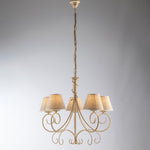 Iron ivory gold chandelier five lights fabric effect lampshades 60x h58 cm