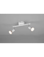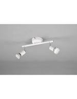 The PARIS bar by Trio Lighting consists of a round metal ceiling rose , a linear arm and 2 adjustable spots , all in matt white .