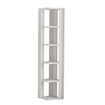 White corner bookcase 5 shelves Nati Features: High quality chipboard material. Thickness 18 mm. PVC edges. 5 shelves. Measurements 34x34x161 h cm. (see details in photos). White color. Product supplied disassembled.