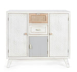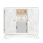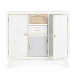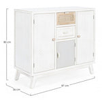 Sideboard with three doors and two drawers in white wood CLOTILDE 87x36x h80 cm
