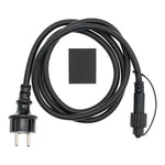 Power cable M-XLF 2x1.5 230V AC, Schuko plug and 1 female output connector, PL E27 Professional 2pins accessory, Max power output 1500W, Outdoor use, Black rubber cable 2x1.5mm2, Dimensions 1.5m, Bag with EcoPack hanging card ( XPLE Art. M-XLF 2x1.5 N).