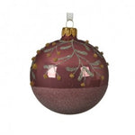 Christmas ball in glass Rosa Velvet with berries branch 8 cm