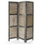 - Paravento a 3 ante in legno e bambù intrecciato con cerniere ad inversione di senso.