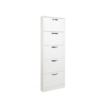 Slim White Ash Shoe Rack in melamine wood 5 flaps