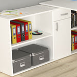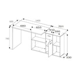White reversible desk with 4 white compartments 210x60xh.74 cm
