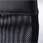 - padded seat covered in 100% polyester fabric and mesh fabric with imitation leather insert
