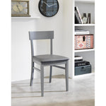 Chair in dark gray lacquered wood with imitation leather seat PRODUCT FEATURES Monaco lacquered wood chair Seat upholstered in padded imitation leather, wooden back Structure in dark gray lacquered beech wood Seat: Dark gray imitation...