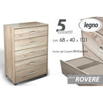 Comò cassettiera 5 cassetti rovere cm 68 x 40 x 101 h