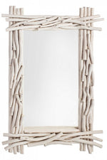 Bleached Teak Branches With Nitrocellulose Based Finish. Can be positioned vertically / horizontally. Mirror size: 70X50. Measurements = 90a - 6b - 60h