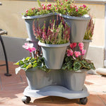 The three-piece clover pot set kit is made from polypropylene and includes a saucer with swivel wheels. This gray product is ideal for gardening enthusiasts looking for a large container for outdoor use. With a capacity of 6 litres, the clover vase is also suitable for confined spaces.