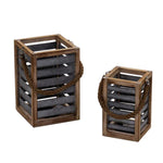 Brown wooden lantern 1-2 with square rope handle cm19x19h28,5