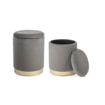 Set of 2 Poufs in velvet with container Gray POLINA