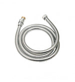 Flexible metal, chrome plated, 200cm extension, double clip closure, resistant to twisting, universal 1-2 conical connection.