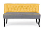 structure in pine wood and plywood, legs in pine wood, nitrocellulose-based paint. seat cover in polyester, backrest in imitation leather with capitonné working. seat padding density 36kg/m3. legs to be assembled.