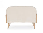 pine and plywood frame. legs in rubberwood. armrests with rattan inserts. polyester lining. padding density in polyurethane foam 24 kg/m3. not removable. legs to be assembled.