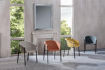 This fabric chair is a stylish and comfortable addition to your decor. With a dimension of 58cm x 56cm and a height of 79cm, this chair fits perfectly into any space. The fabric covering offers a touch of class, while the metal legs give stability and resistance. The legs are painted black for a modern and sophisticated look. Add style and comfort to your space with this high-quality fabric chair.