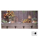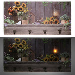 4-seater wooden hanger with sunflower led cm60x30x1,8