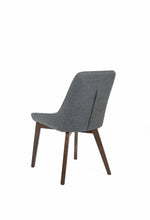 This fabric chair is a stylish and comfortable addition to your decor. With a dimension of 62cm x 49.5cm and a height of 87cm, this chair is perfect for placing around the dining table or as additional seating in the living room. The green fabric upholstery gives a touch of freshness and style, while the solid walnut legs give stability and durability.
