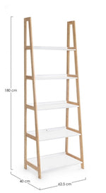 Bookcase structure in bamboo wood shelves in matt white lacquered mdf