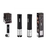 The Black Electric Corkscrew is a perfect product for those who want to have a functional and fashionable object in their own home. Made of metal and plastic, the corkscrew has dimensions of approximately 5 x 23.7 x 5 cm and is available in the color black. Thanks to its electric function, you will be able to open your bottles of wine quickly and easily. You only need 4 AA batteries to make it work, not included. Buy your Black Electric Corkscrew now at the best price!