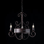 Black lacquered iron chandelier with rust decoration 3 lights with friezes