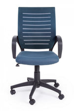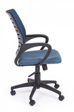 Blue office chair with wheels and armrests