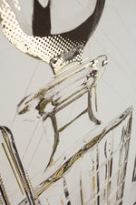 Hand Painted Print On Canvas With Golden Foil Applications, Pine Wood Structure. Plastic frame. Measurements = 82.5x4.5x82.5