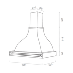 DIAMANTE white rustic kitchen hood with 90 cm inlaid wooden frame