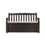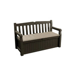 Cassapanca in resina con finitura effetto legno, marrone con seduta beige