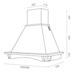 CASTELLO white rustic kitchen hood with 60 cm inlaid wooden frame