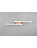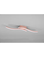 ROUTE by Trio Lighting is a ceiling light composed of a ceiling plate and double corrugated metal rod in rose gold color, white plastic diffusers.