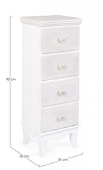 Cassettiera da camera in MDF quattro cassetti Bianca CHARLENE 31x26x h90 cm