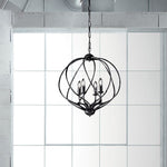 Suspension chandelier in black iron with silver decoration four lights 43x h50 cm