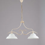 Classic chandelier in iron ivory gold white glass two lights 85x h51 cm