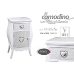 Comodino shabby bianco cuore con vano e cassetto