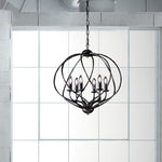 Suspension chandelier in black iron with silver decoration six lights 57x h57 cm