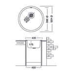 Built-in stainless steel cockpit kitchen sink diam. 43.5 cm