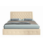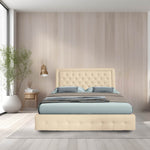 Buttonsquare Champagne Upholstered Double Storage Bed with Quilted Headboard
