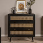 Vienna03A 3-drawer black chest of drawers with wicker fronts