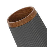Toothbrush holder from the London series. The product belongs to the Feridras brand and has a gray finish and brown wood effect on the top. The material used for this glass is plastic, recycled and processed to resist liquids.