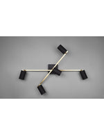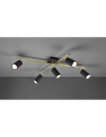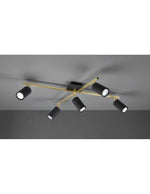 Il faretto spot MARLEY di Trio Lighting presenta una struttura in metallo composta da doppia bacchetta lineare color oro e 5 faretti spot cilindrici orientabili di colore nero opaco.