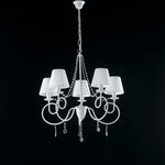 White iron chandelier five lights shabby decoration and rhinestones White lampshades 68x h72 cm