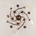 Brown Gold iron ceiling lamp with White Amber glasses five lights 70x h15 cm